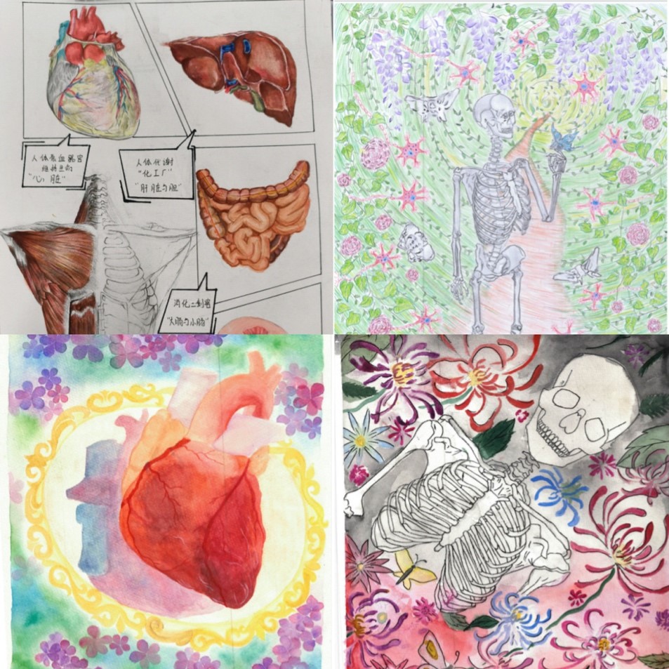 本次大赛参赛作品涵盖人体解剖学、组织学与胚胎学等学科领域,形式多样,题材丰富。医员工们以画笔诠释骨骼的坚韧、神经血管的精微,将抽象的形态学结构转化为充满生命力的艺术表达。这种医艺融合的创作,不仅展现了扎实的专业知识,更饱含对生命奥秘的敬畏与礼赞,生动践行了“以画促学、以画促教、以画抒情”的理念。