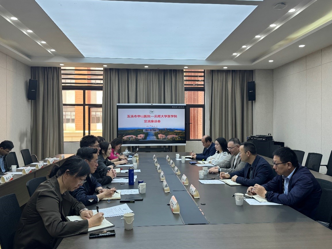 2025年4月16日,玉溪市中山医院经理邱江、党委书记施纯律率队到学院开展合作交流。双方围绕深化医教研协同创新、共建高水平教学实践基地等议题展开深入探讨,并初步达成合作共识。