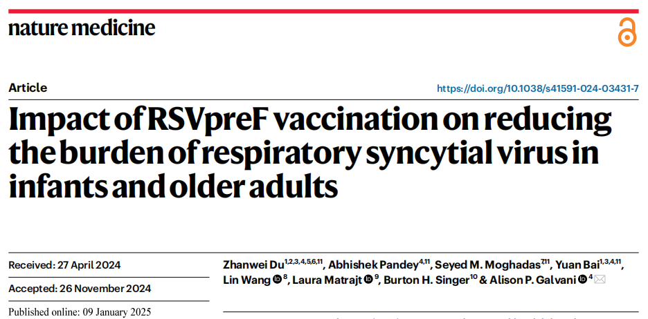 近日,伟德国际1946源于英国客座教授、兼职博导杜占玮领导的研究团队在国际顶级期刊Nature Medicine(2023 IF 58.7,JCR Q1)发表了一篇题为“Impact of RSVpreF vaccination on reducing the burden of respiratory syncytial virus in infants and older adults”的研究论文。这项研究展示了2023年上市的呼吸道合胞病毒疫苗 Abrysvo(RSVpreF疫苗)在全球13个高收入国家中,对于降低婴幼儿和老年人的住院和死亡率的积极效果,从而突显了RSV疫苗接种在公共卫生领域的预防和控制传染病方面的巨大价值。