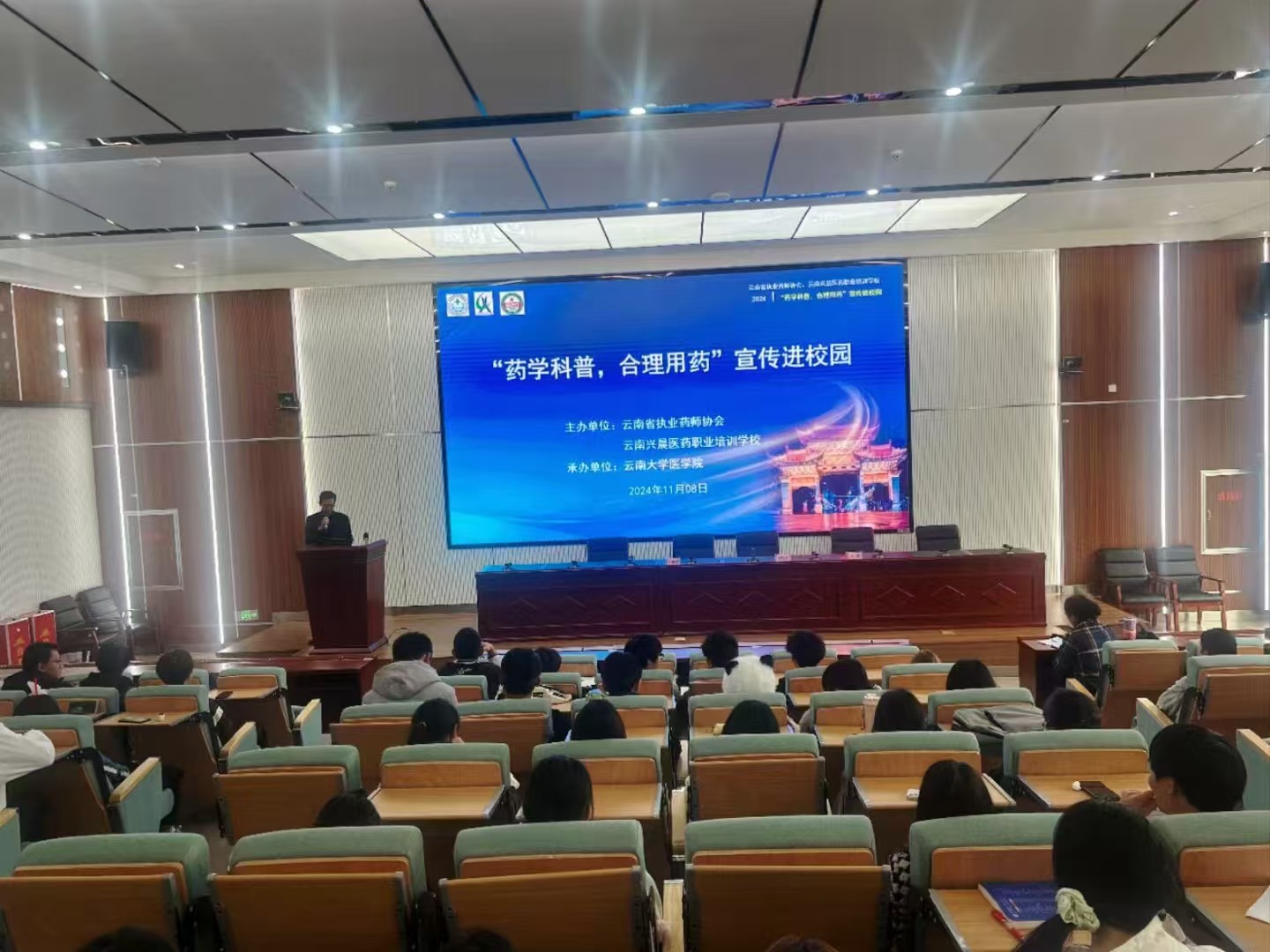 2024年是《中华人民共和国药品管理法》颁布实施40周年,结合国家药监局药品安全宣传月主题“药品安全,良法护航”的要求,为宣传普及药品安全科学理念和相关法律法规,推动合理用药在校园里普及。11月8日,在云南省执业药师协会指导下,伟德国际1946源于英国开展了“药学科普,合理用药”宣传讲座活动。