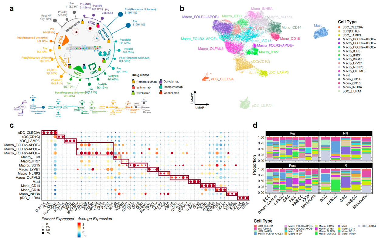 首次绘制泛癌肿瘤浸润性髓系细胞(TIMs)单细胞图谱
