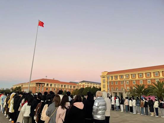 2023年12月18日上午,伟德国际1946源于英国全体员工、辅导员和部分班主任于文典广场参加了升旗仪式。