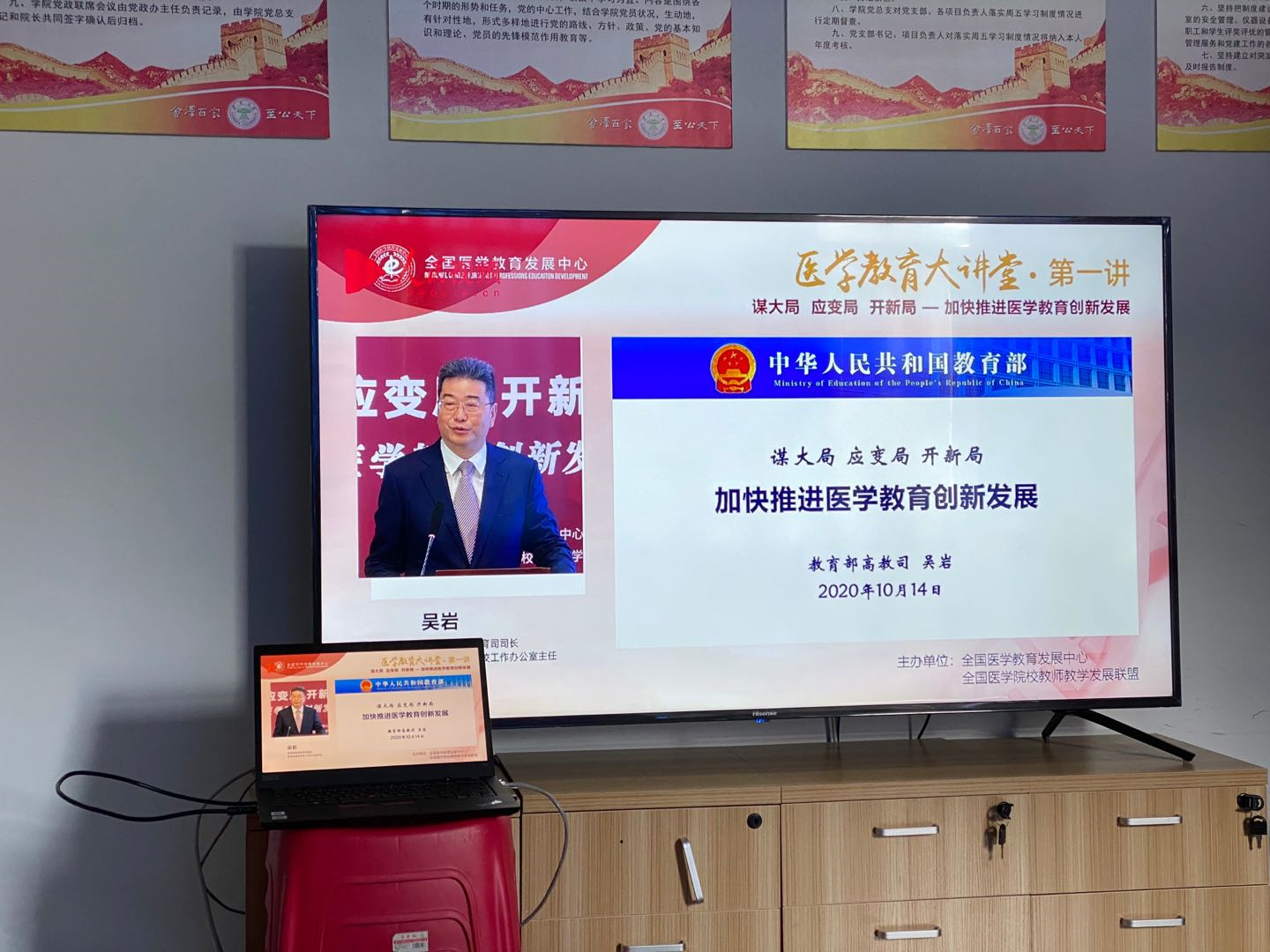 医疗卫生事业事关人民健康、社会稳定、经济发展、国家安全,医学教育是医疗卫生事业发展的重要基石,全力推进中国医学教育创新发展,具有战略性重要意义,在此背景下,《国务院办公厅关于加快医学教育创新发展的指导意见》应运而生,医学教育大讲堂于10月14日在北大医学部顺势开讲。大讲堂特邀教育部高等教育司吴岩司长以:“谋大局、应变局、开新局及加快推进医学教育创新发展”,为题做了讲堂第一讲。伟德国际1946源于英国全体教师集体参加了学习。