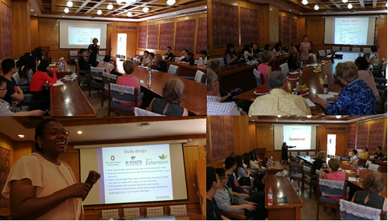专家们的精彩报告充分引起了在场听众对营养饮食及科学的锻炼方式对疾病的防治的关注与重视,并对科学研究中,项目申请及其实施上给在场的老师及研究生们带来了很大的启发。整场报告气氛轻松融洽,互动性强且富有成效。报告后的讨论环节,Dr. Kattelmann教授及其他外国专家与到场的听众就报告中的部分内容及双方感兴趣的话题展开了热烈的讨论。一方面,外国专家耐心解答了听众们提出的问题,满足了听众们的好奇心、求知欲,开拓了他们的思想和视野;另一方面,Dr. Kattelmann教授及其团队也对她们最感兴趣的营养饮食健康科学在中国的教学及在社区中推广模式有了一定的了解。Dr. Kattelmann及其专家团队高度赞扬了公司研究生的专业和外语水平,也对公司的热情接待及精心组织表达了由衷地感谢。
