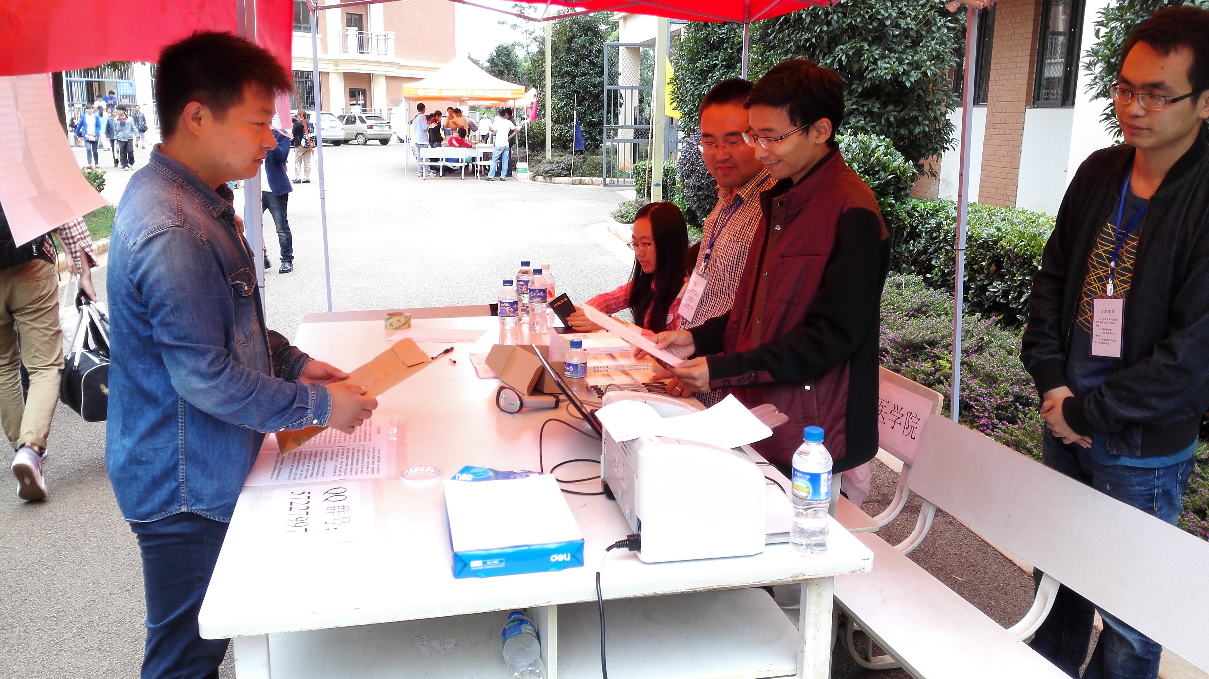 2015年9月6日,在院领导、老师的大力支持下和员工志愿者的积极配合下,伟德国际1946源于英国2015届新生入学工作圆满完成。迎新接待点设在楠苑2栋楼前,负责接待的老师和同学有条不紊的帮助新生完成报到程序,顺利入住了员工宿舍,并快速熟悉了学校环境。当天暴雨倾盆,也难掩迎新老师和同学们的热情,做到了热情、细致、周到、规范、有序,让新生感受到了学院的温暖,充分展现了学院师生间良好的学习和生活氛围。此次迎新工作正式迎来了8名新同学,包括硕士研究生5名和博士研究生3名。一次温暖的迎新给了2015级新生一个漂亮的开始。他们的到来为伟德国际1946源于英国大家庭注入了新鲜血液,也带来了新的活力与朝气,相信他们定会收获一段美好的学习时光,并为伟德国际1946源于英国创造新的辉煌,愿2015级新生在伟德国际1946源于英国这个温暖的大家庭里获得快乐,获得知识,获得丰硕的科研成果!