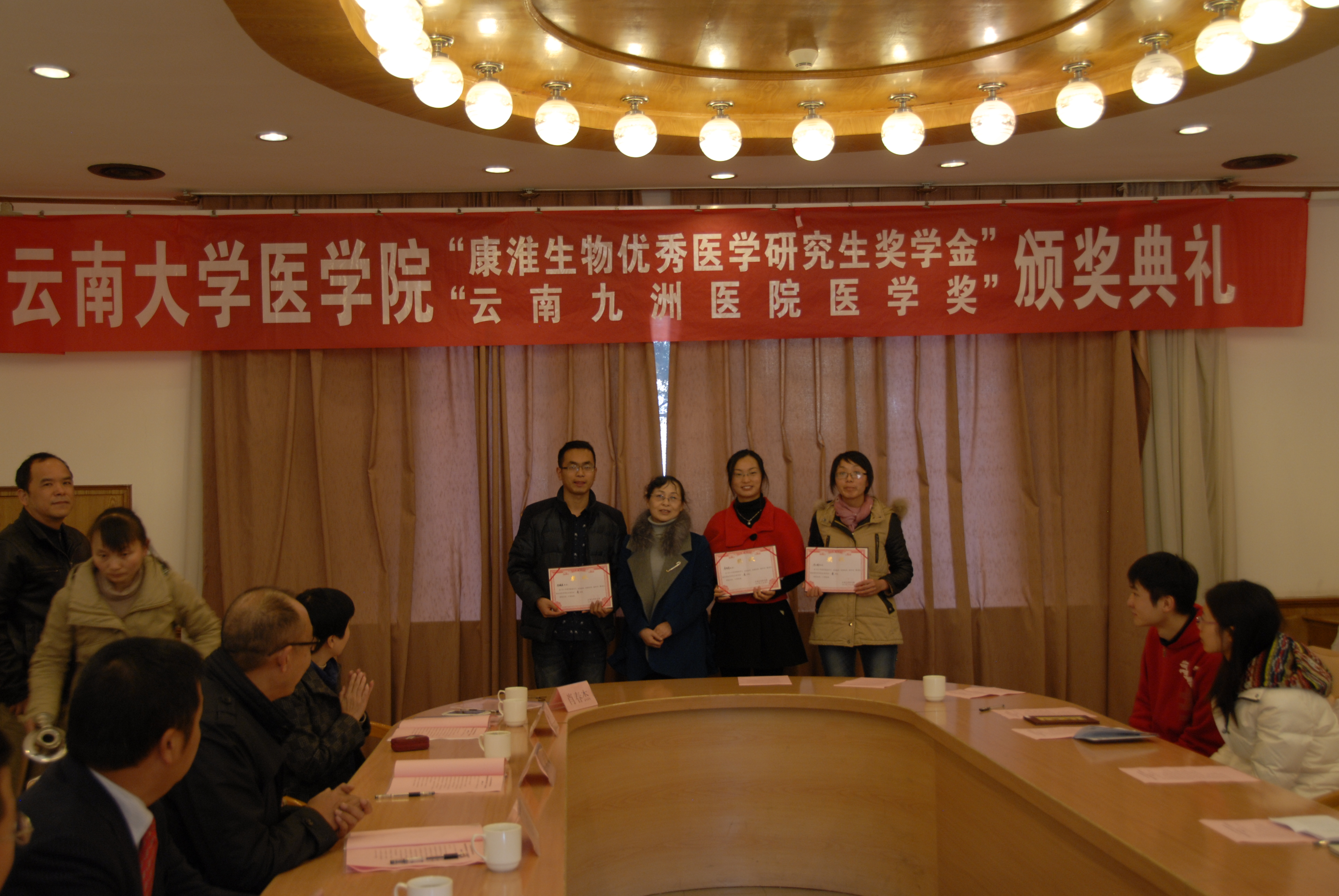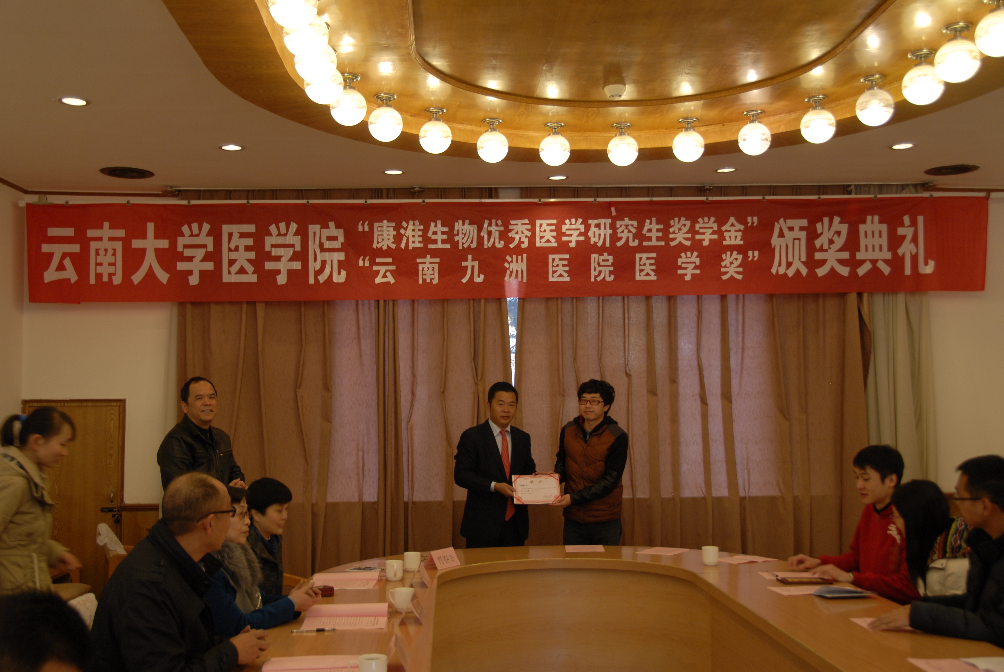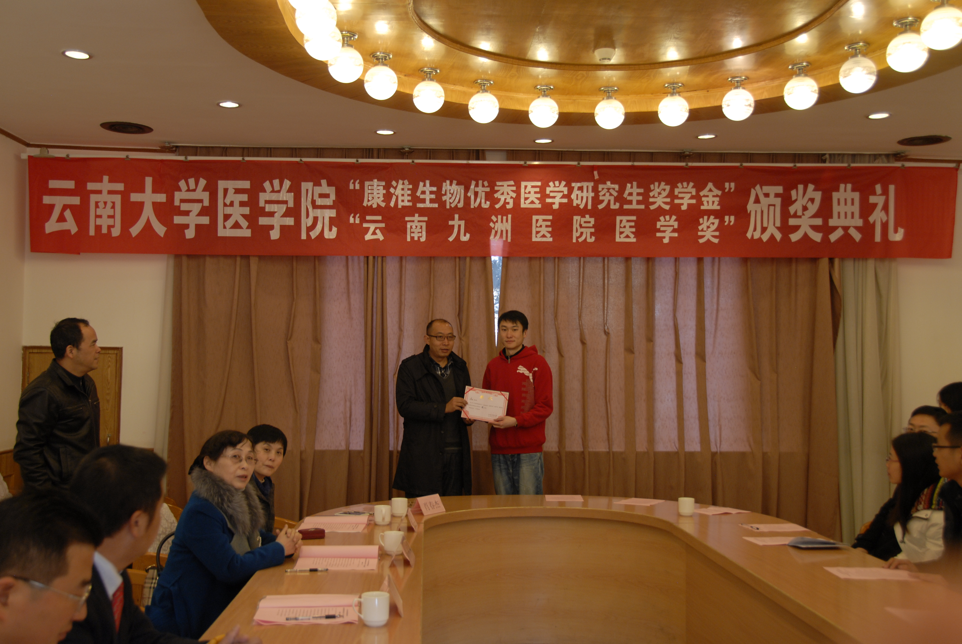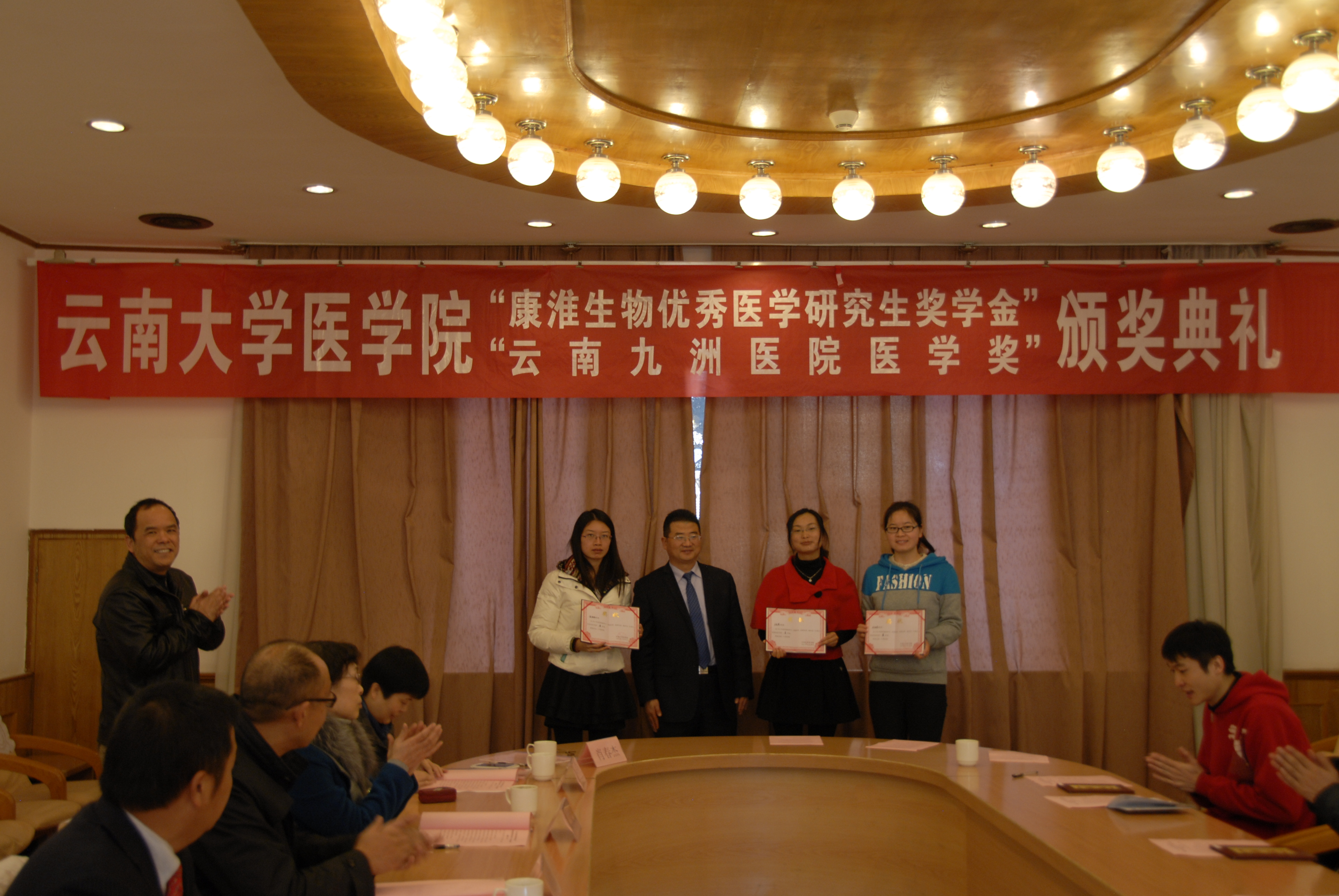 2014年,伟德国际1946源于英国有8名研究生获得“康淮生物优秀医学研究生奖学金”和“云南九洲医院医学奖”共计4万元奖励。