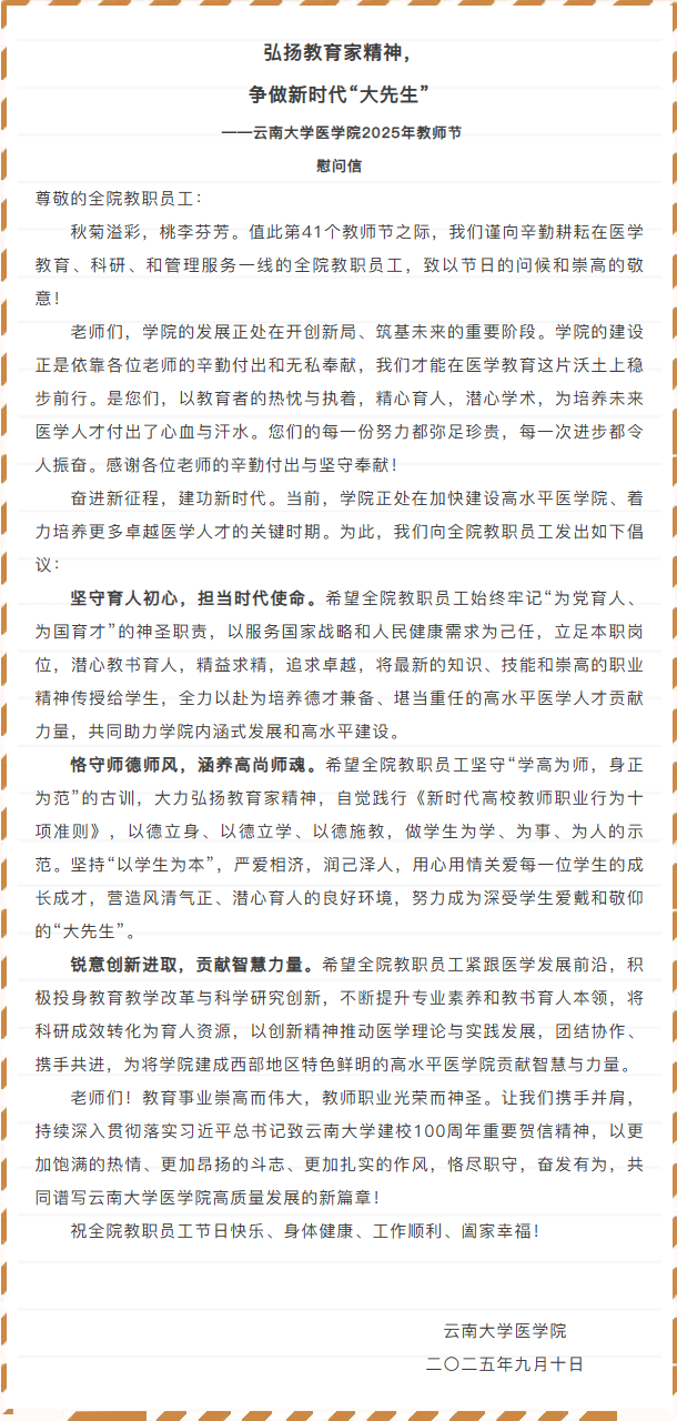 弘扬教育家精神,争做新时代“大先生”——伟德国际1946源于英国2025年教师节慰问信