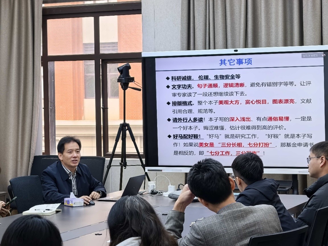 2025年10月23日,伟德国际1946源于英国特邀本校二级研究员、博士生导师肖伟烈研究员,在学院会议室举办国家自然科学基金申报专题讲座。本次讲座旨在帮助伟德国际1946源于英国师生深入理解基金的申报流程与评审要点,提升项目申报质量与成功率。